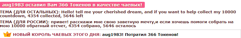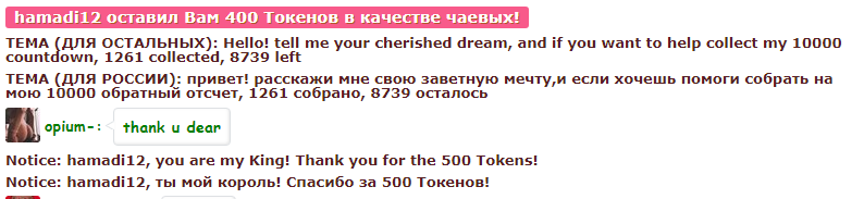 Paspaudę mygtuką, Jūs galite 60 sekundžių pakelti opium- į pirmąją poziciją pagrindiniame puslapyje. Per šį laiką modelio pokalbių kambarys bus labiau matomas ir neįtikėtinai populiarus! Apie Jūsų veiksmą pokalbyje bus rodomas pranešimas, matomas modeliui ir kitiems pokalbio dalyviams. opium- tikrai įvertins šį veiksmą ir bus nepaprastai dėkinga Jums!
